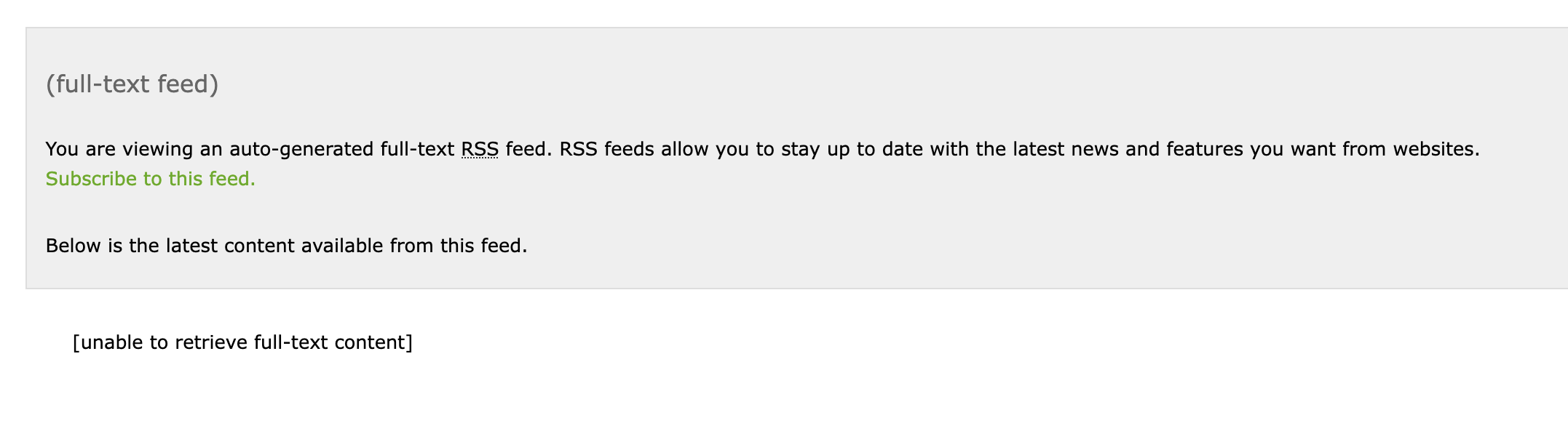 In my feed I get the [unable to retrieve full-text content] message and the content stops after the second paragraph and is truncated with a “Read the Rest” link: